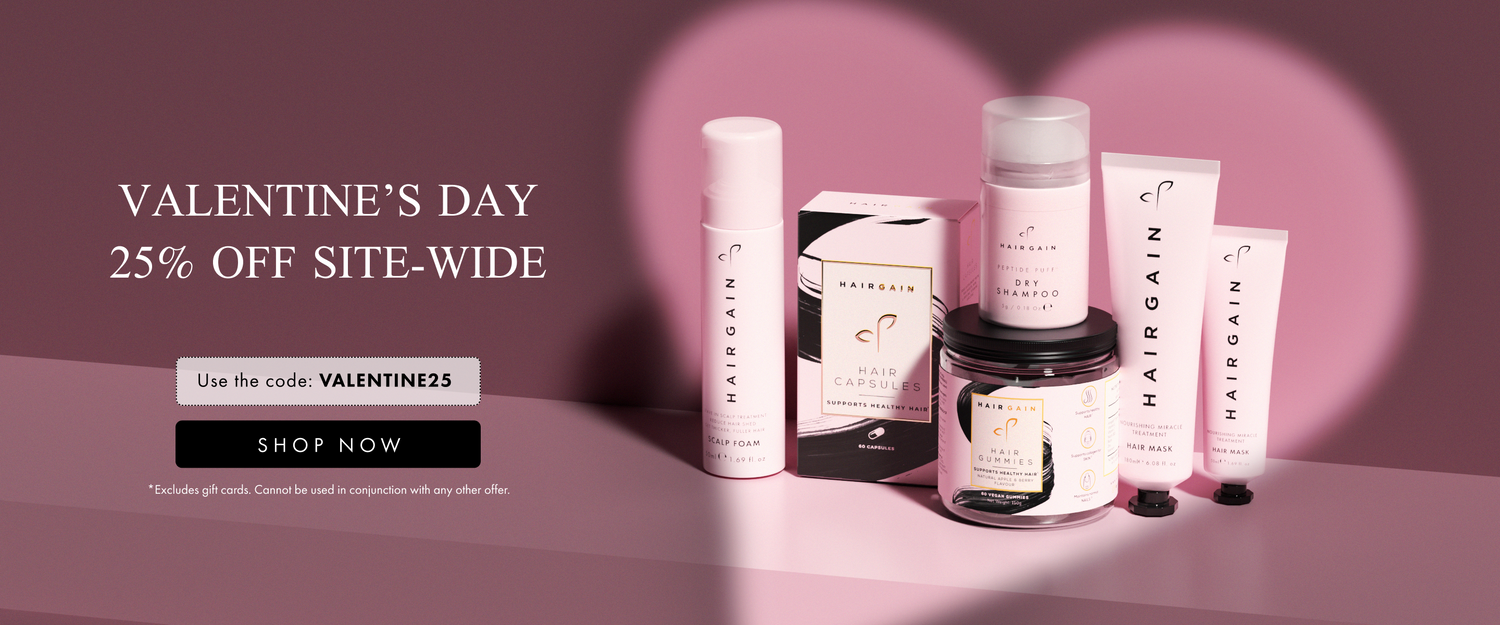 Backed by trichologists and nutritionists, Hair Gain is an award winning vegan hair care range that has been scientifically formulated to support healthy hair. Our hair supplements combines the clinically-tested AnaGain™ ingredient, a phytonutrient derived from organic pea shoots, with essential vitamins and minerals, such as biotin, selenium and zinc which contribute to the maintenance of normal hair.